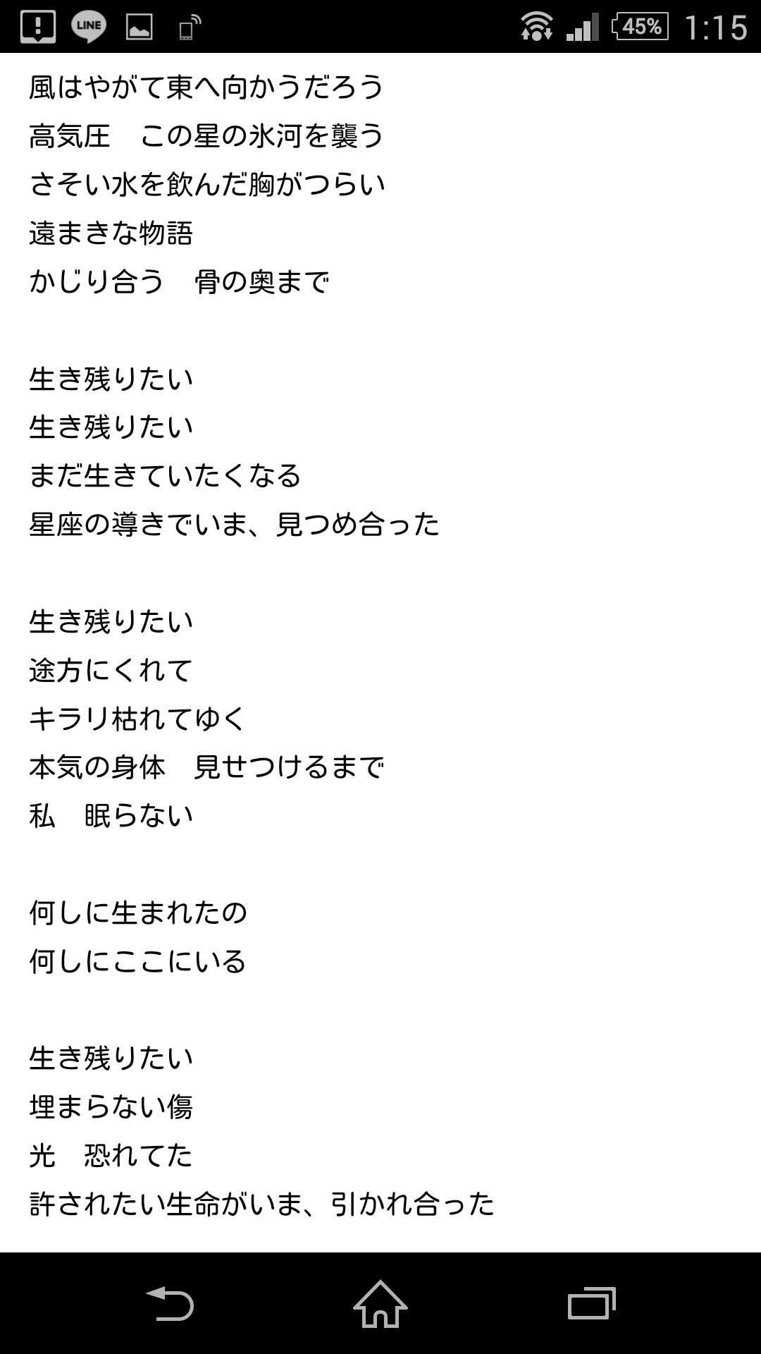 星を廻せ 世界のまんなかで くしゃみすればどこかの森で蝶が乱舞 キミが守るドアの鍵 デタラメ 恥ずかしい物語 舐めあっても ライオンは強い 生き残りたい 生き残りたい まだ生き.