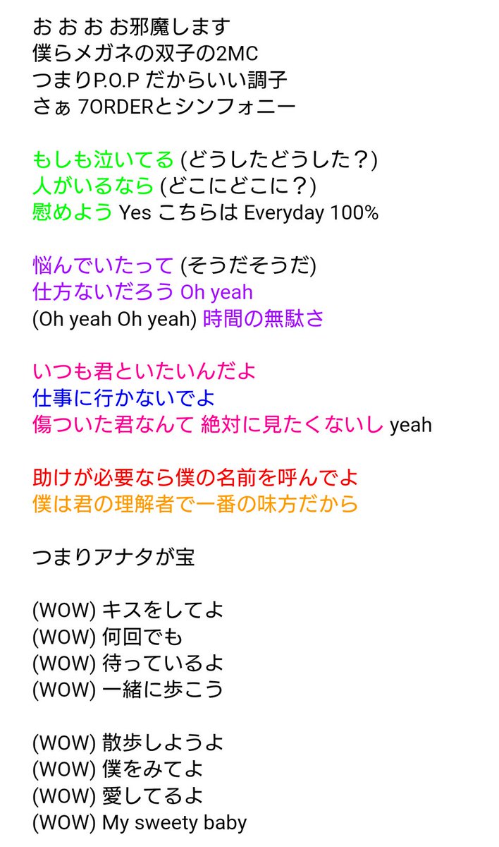 øã£ã±ãããå°ç Ãã³ãã³ã¨çã¡ããã®ï¼æ¥ ϼã¤ã®è¹è²ã®ä¸ç Ãã¹ã㤠7orderãã¨ã§ã from stat.ameba.jp Youtu.be 雨が始まりの合図 〈作詞:7order / 作曲:真田佑馬〉だと思われます。 ★安井謙太郎29歳の誕生日に残るメンバー6人から贈られた楽曲 ★各パートの歌い手がそのパートの作詞を担当しているとのこと (真田) 小さな体に背負い込んだ 余計な荷物は下ろして 一緒に旅に出よう (諸星) 道への. 「we are 7order in parco」オンライン販売決定!! Sabaoflower 作詞:daiki・真田佑馬 作曲:真田佑馬 広がる青空の下 吹き抜ける風 留まることのないまま すり抜けていく somewhere 一体どこへ消えていくの? far away 気ままに走り去っていく 動きだせず俯いたままの 君の手はもう離さないから 幸せの形に 色を乗せていこうか 綺麗な
