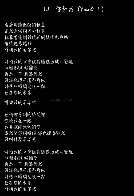 U&I歌詞. More images for u&i歌詞 » Insert song u&i, with english + romaji subtitles.