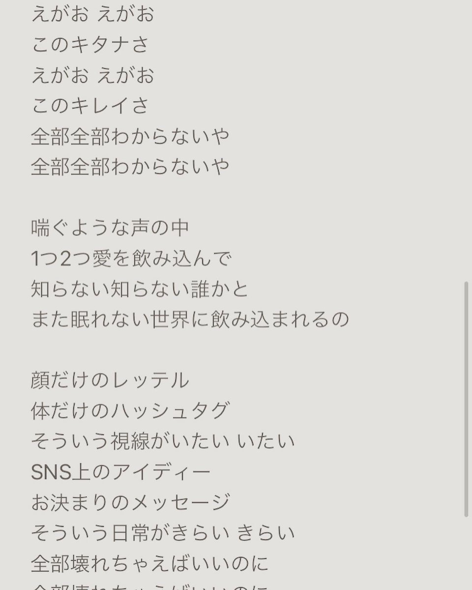 Source: pbs.twimg.com 0.1秒で飽きる毎日が 突然、輝き出したんだ 目が合うだけでも なぜだか胸が痛んだ 空っぽのコルクボードには どんな写真があったのか気になった 見つめたまま隣で黙っていた 君の犬なりに気を遣ったんだ 振り向いて欲しくて なぜか甘えてしまう
